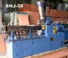 SHJ-38 Co-rotating Twin Screw Extruder Can be used to produce compounding pellets, plastics sheet Spec of the twin screw extruder Screw Dia: 38mm L/D: 28 60(Different Task Different L/D) Power: 22kW Construction mat of screw: 38CrMoAlA W6Mo5Cr4V2 Other special mat. for special task Construction mat of barrel: 38CrMoAlA W6Mo5Cr4V2 Other special mat. for special task Electric heating system Water cooling system Vacuum system Feeding system Pelletizing down stream machine Strand pelletizer Air cooling die face pelletizer Water-ring pelletizer Under water pelletizer Sheet forming down stream machine Gear pump T-die 3-Roller Calender Convey&Cooling roller Haul off unit Trim unit Winder/Cutter&Stack Simens Control system